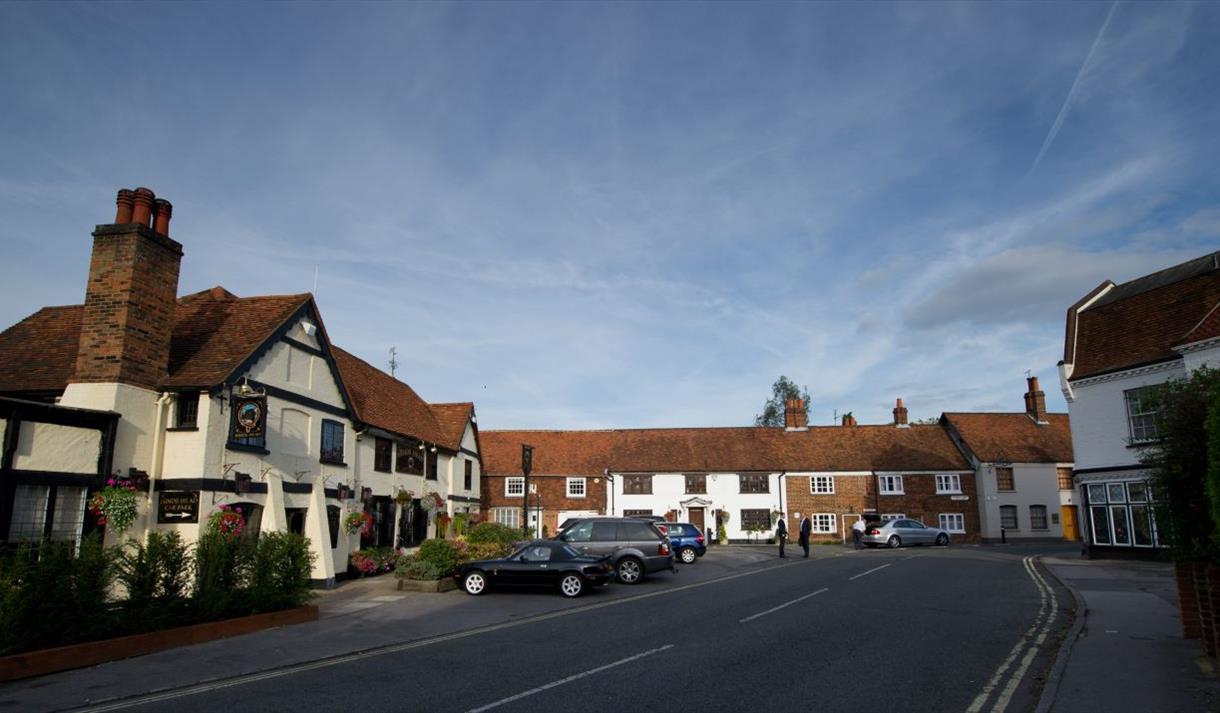 The name of Bray is irretrievably linked with that of Simon Aleyn, its turncoat vicar during the reigns of Henry VIII, Edward VI, Mary and Elizabeth I. The famous song based on the Vicar of Bray satirises his position and his determination to maintain his office. The parish church of St. Michael has changed considerably since Aleyn’s day but still retains interesting internal features, including the rich canopied tomb of William Goddard who, in 1627, founded the group of mellow brick almshouses known as Jesus Hospital.